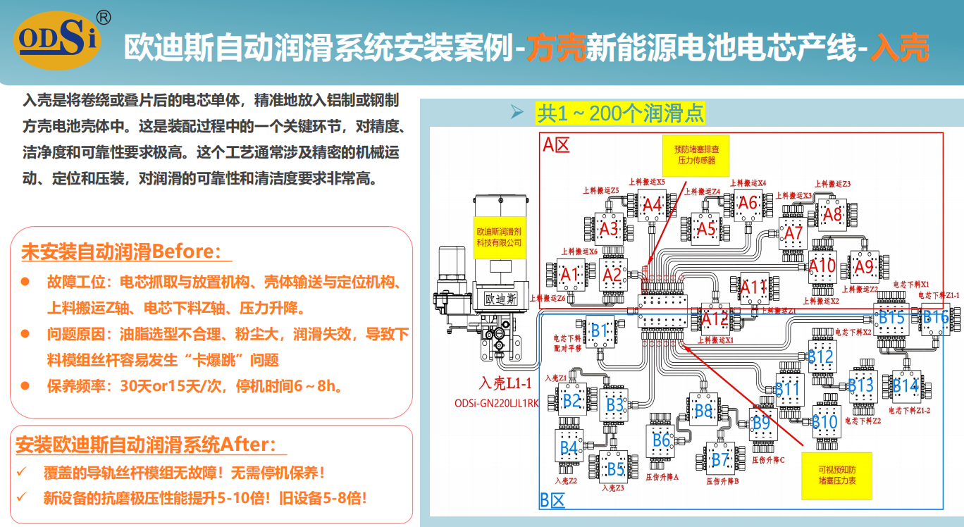 欧迪斯三大核心业务板块:1、高性能特种润滑油脂剂 2、非标订制智能自动润滑系统 3、自动化机器人维护保养。 欧迪斯润滑技术为您一对一提供各领域各行业的润滑订制服务业务!全国服务热线:4000886809