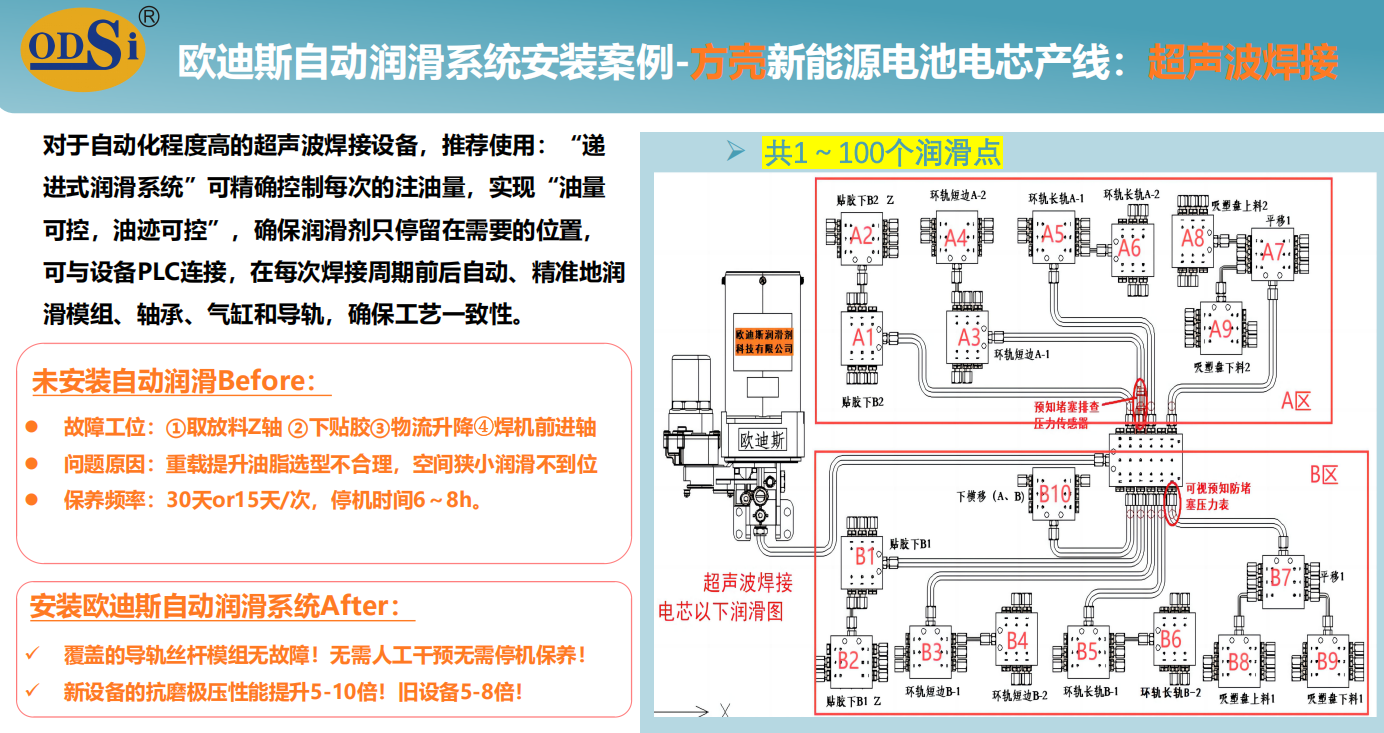 欧迪斯三大核心业务板块:1、高性能特种润滑油脂剂 2、非标订制智能自动润滑系统 3、自动化机器人维护保养。 欧迪斯润滑技术为您一对一提供各领域各行业的润滑订制服务业务!全国服务热线:4000886809